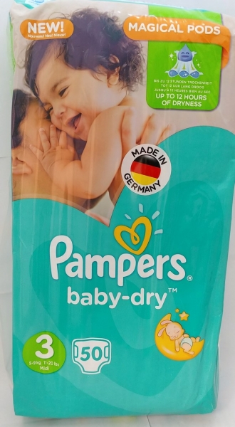 پوشک پمپرز آلمانی بیبی درای سایز 3 تعداد 50 عددی pampersbaby dry